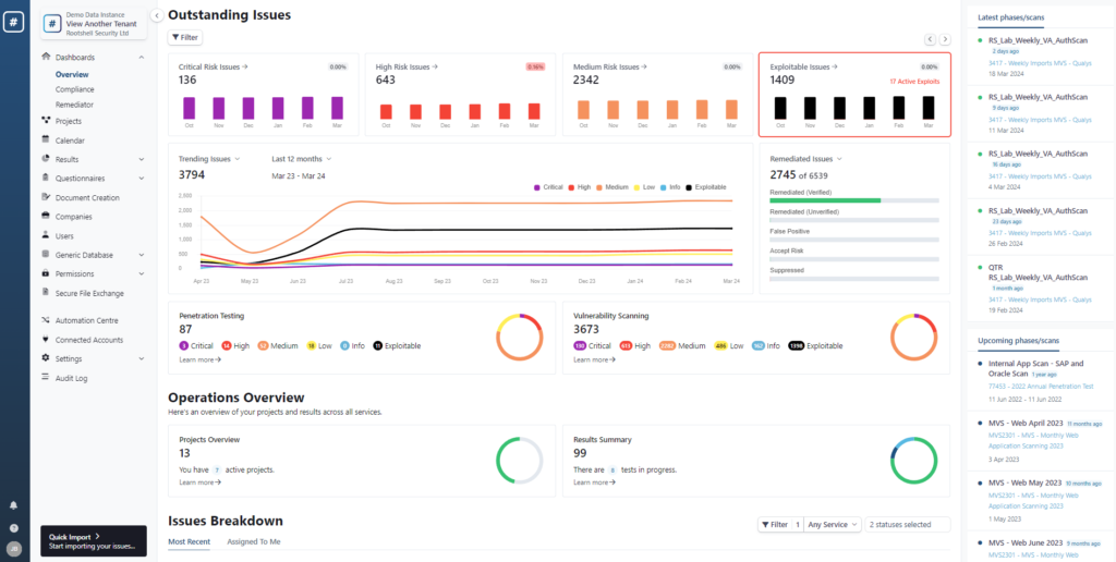 You will receive your PTaaS data through The Rootshell Platform, which accelerates and streamlines every remediation workflow through automation, to help you resolve critical issues faster than ever before.